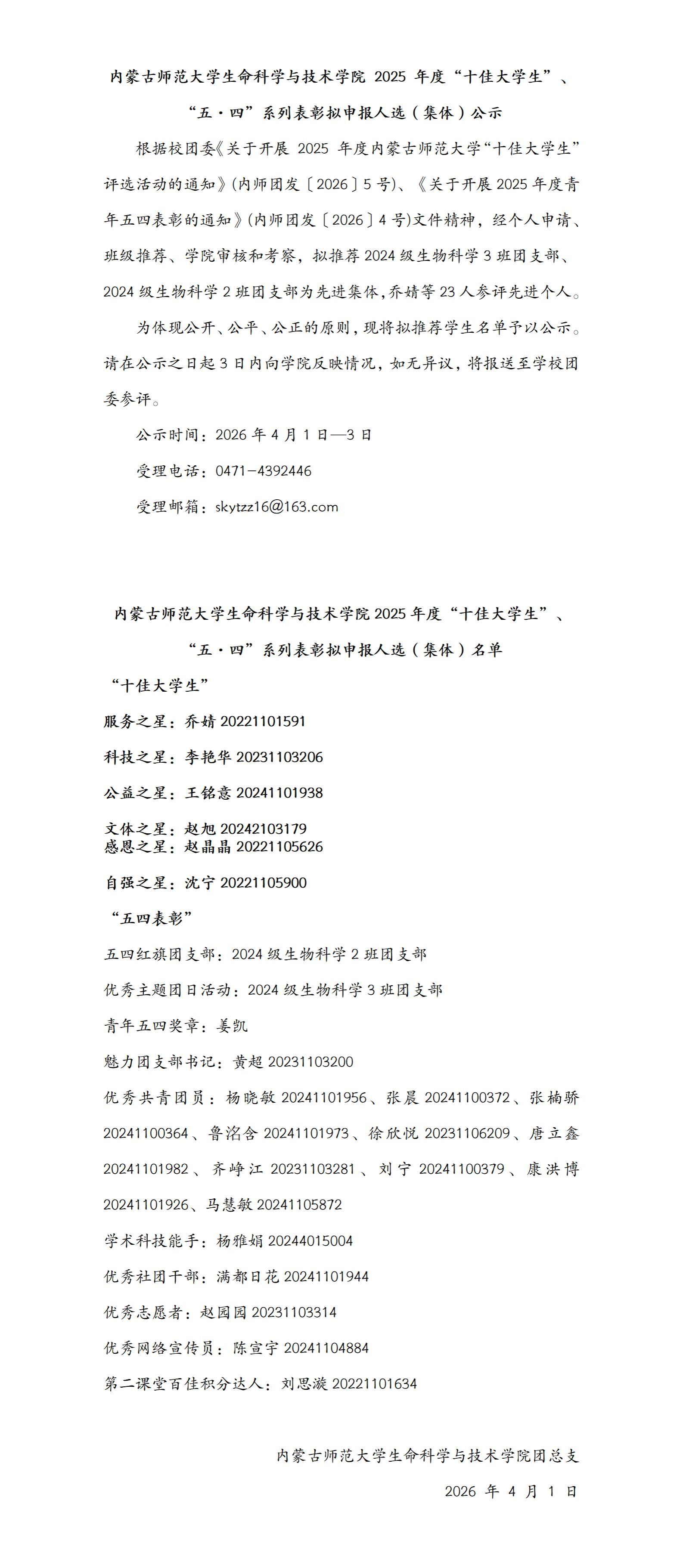 老虎机-财神老虎机 2025 年度“十佳大学生”、“五·四”系列表彰拟申报人选(集体)公示
